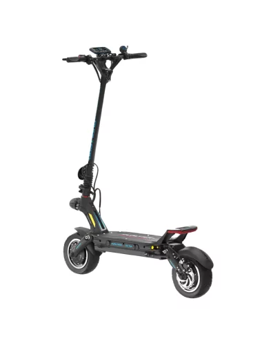 En cuanto al apartado técnico, está equipado con un Motor Dual de 2X500W, con una potencia máxima de 2000W, consiguiendo con esto una velocidad máxima de hasta 80km/h (limitado a 25km/h con certificado), sistema de frenos hidráulicos acompñado de unas ruedas de 10″ super anchas, sistema de plegado reforzado doble, suspensión ajustable, y para terminar y lo más importante, su batería de 60V 28Ah LG con la cual podremos recorrer hasta 100 kilometros con una sola carga.